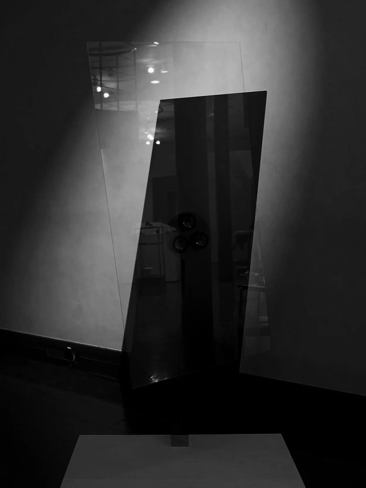 漆を塗った凹面鏡を光の反射面として使用したインスタレーションです。光が振り子のように動き、空間が時間と共に歪んでいくイメージを作り出します。